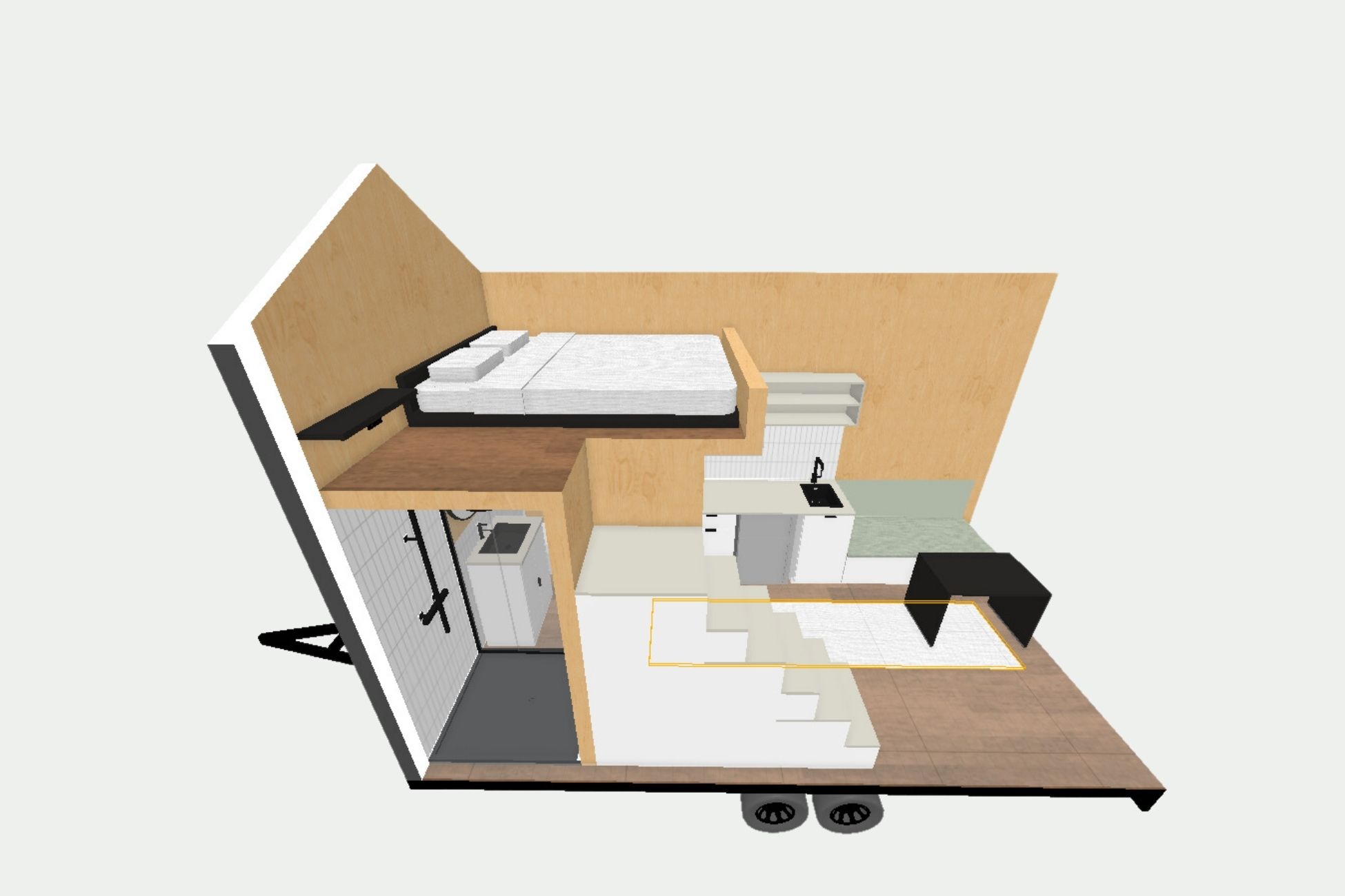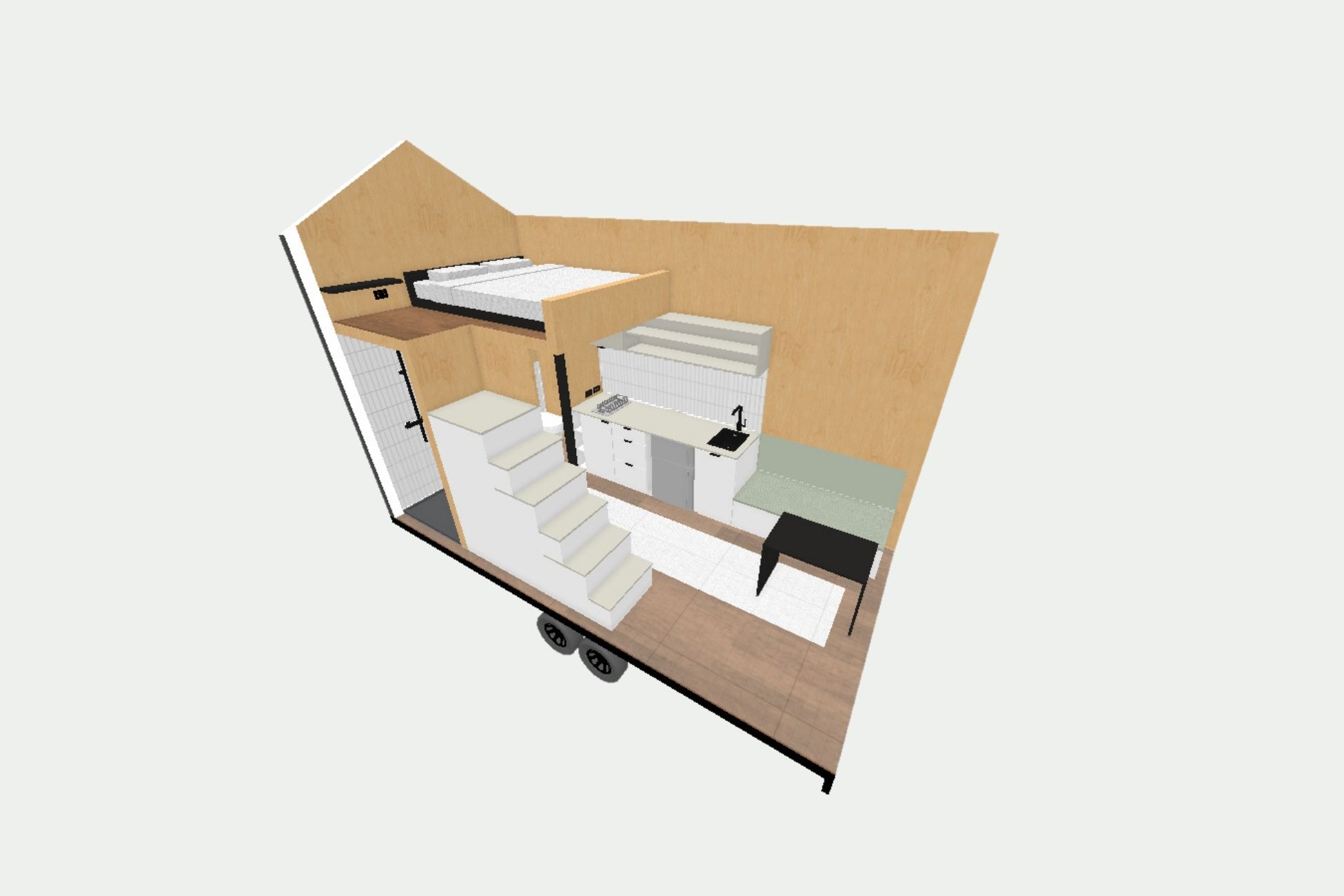 The Coastal Loft is a 4.8m Tiny Home on Wheels crafted to deliver comfort and functionality in every detail. Featuring a cozy loft bedroom, a thoughtfully designed kitchen, and a streamlined bathroom, this model is ideal for individuals or couples embracing an eco-friendly, minimalist lifestyle. Perfect for short stays or as a secondary dwelling.