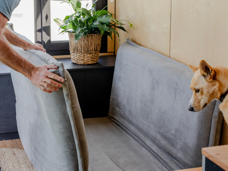 The design of his tiny home reflects this mindset. Free from excess items, it incorporates features like underfloor storage to keep things organized and out of sight. His couch cleverly doubles as a queen-sized bed, offering versatility without compromising on space or comfort. This intentional approach has created a living environment that feels open, functional, and perfectly aligned with his lifestyle.